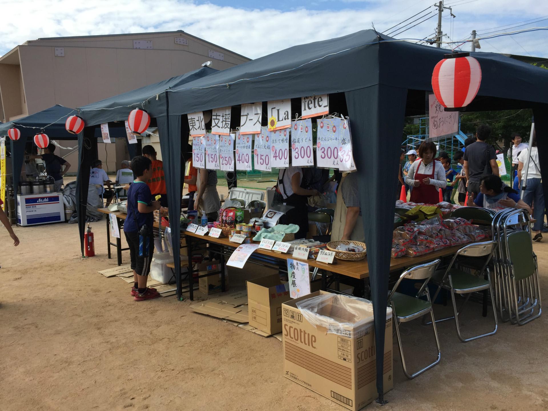 また、生ビール販売ブース、射的ブース、東北支援物産販売ブース、