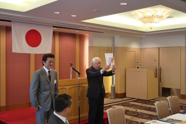 井戸知事の激励会を開催し、推薦書及び激励金をお渡しに。