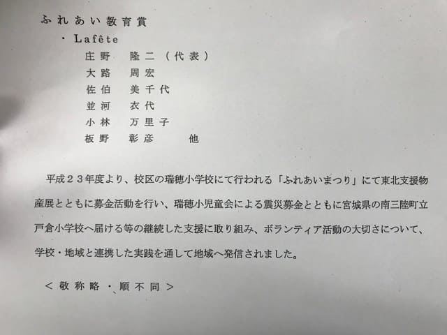 表彰されることが目的ではありませんが、継続した活動が公に見ていただいたことは