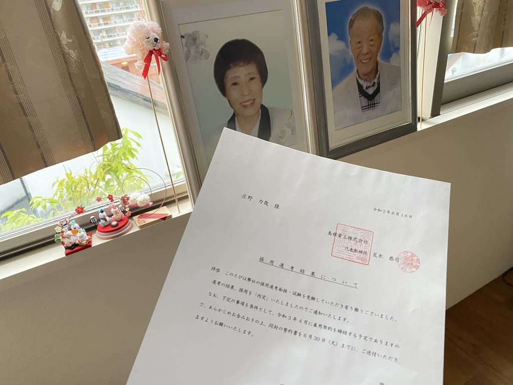 長男の内定通知を頂き、父ちゃん、母ちゃんに