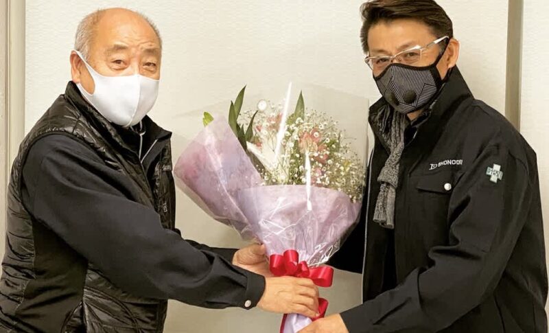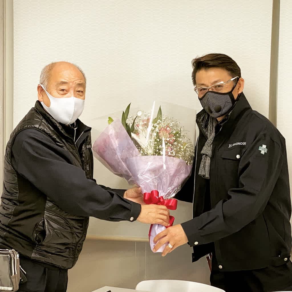 山崎氏の定年退職に伴う、花束贈呈をさせて