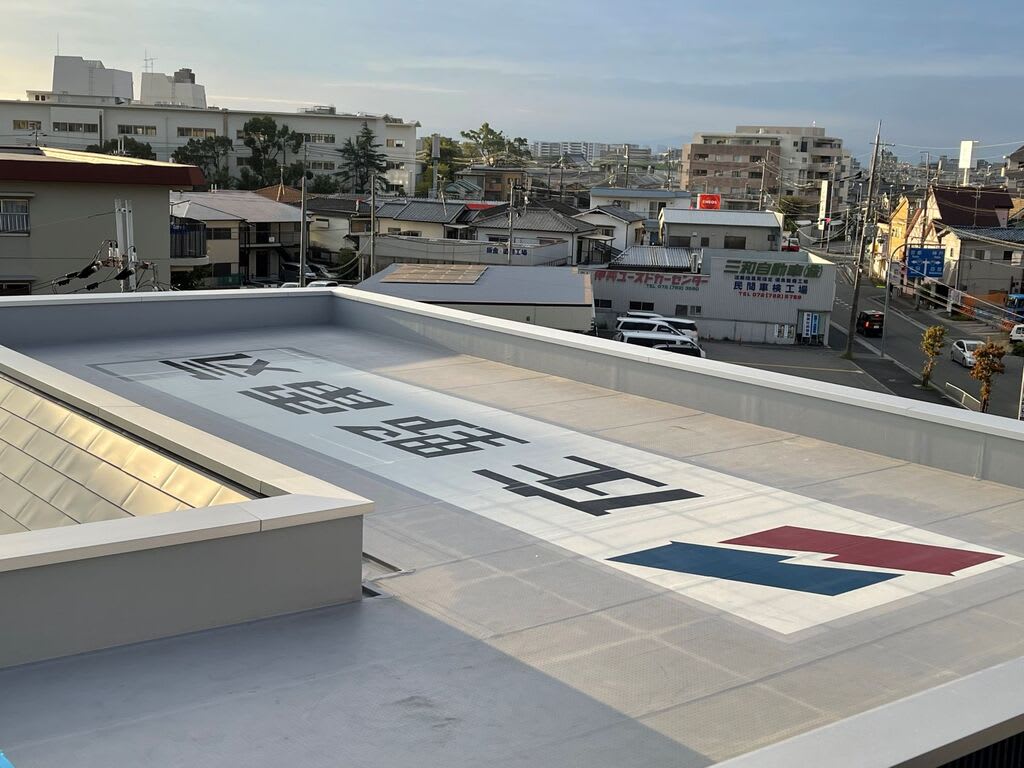 屋上には新ロゴと社名をプリントしました。