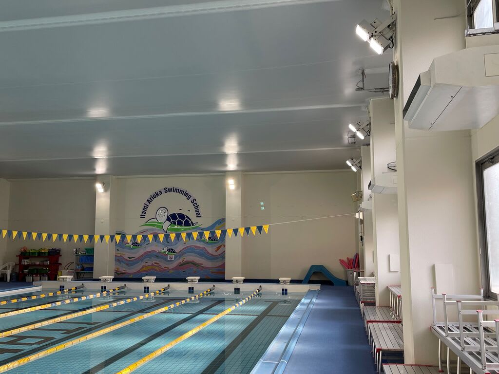 伊丹有岡スイミングプール様の、プール照明LED化工事を
